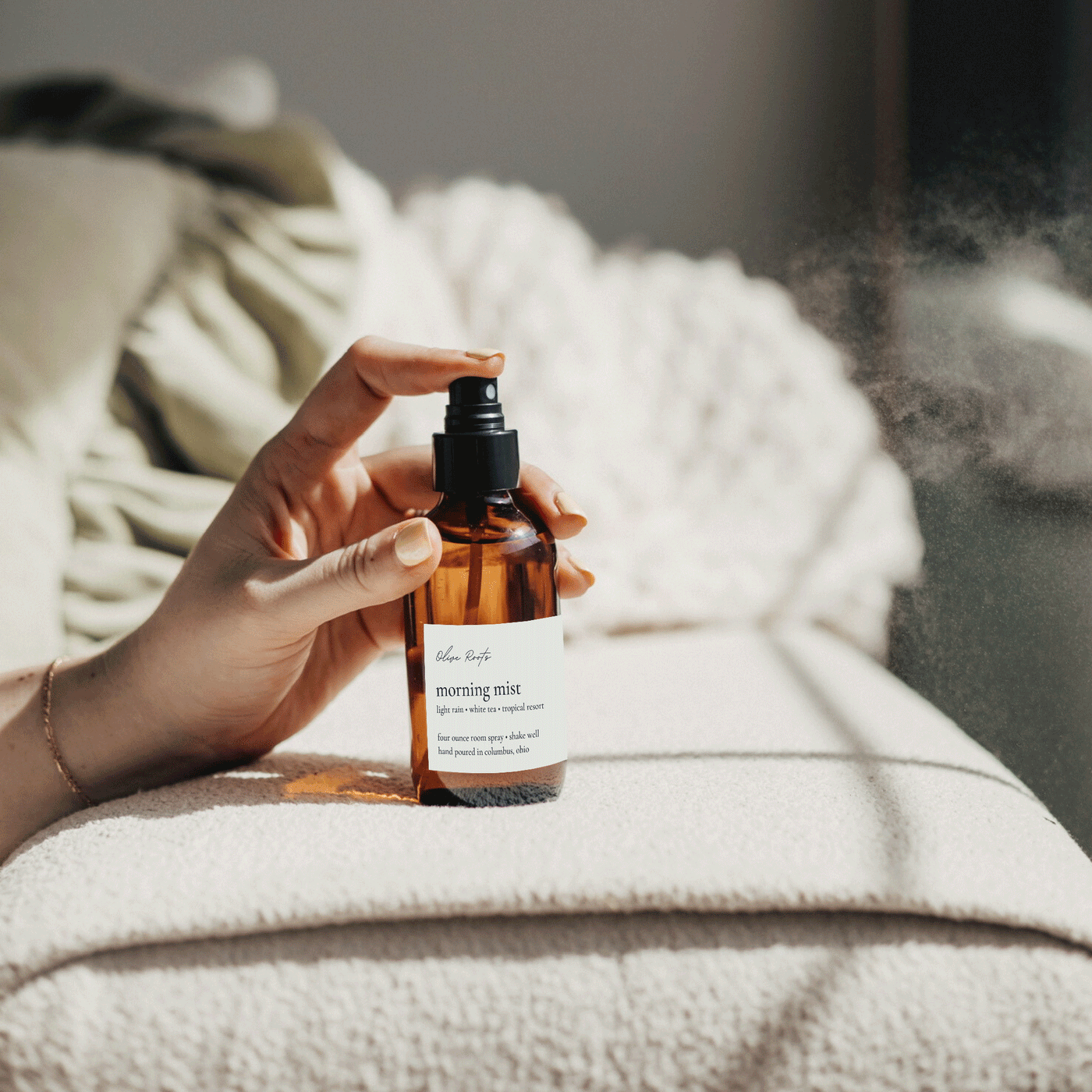Room spray is the best way to quickly freshen up any space! It comes in our 4oz signature amber glass. This product is safe to use on your skin, sheets, couch, face mask, car, in the bathroom, and anywhere else that needs a spritz of good smells!